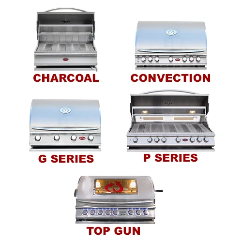 Variables to choose when selecting a grill is unit size, square inches of grilling space, and features. Choose between a Charcoal grill, Convection Grill, G-Series, P-Series, and Top Gun.